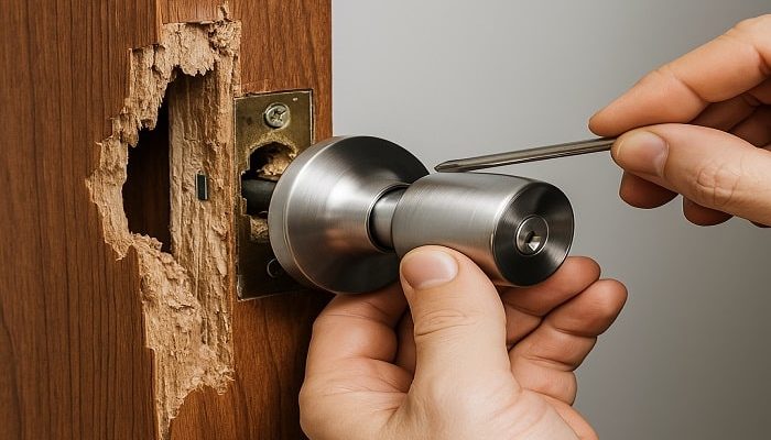 - Installer temporairement un verrou provisoire en attendant le remplacement complet.